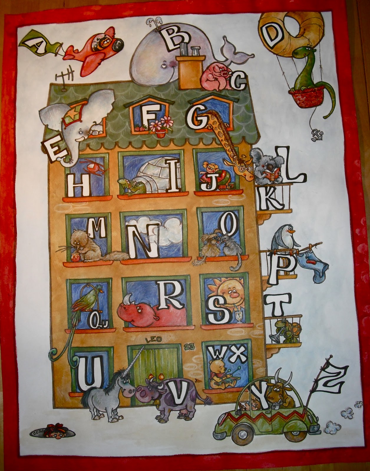 Amazing how time flies by.... now the baby is all growned up and he is learning the letters! So this year's handmade birthday present will be a poster with the alphabet.